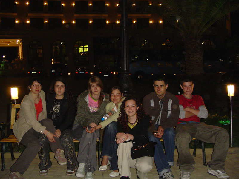 С колегите в хотела. Последният етаж е само за нас. Водата в баните- минерална. Огромно огледало във всяка стая. Това е важно! Изглед към морето. То това не е от екстрите - беше си нещо задължително, де!.. Долу басейн. 33°С температура на водата. Запотената халба на една ръка разстояние...